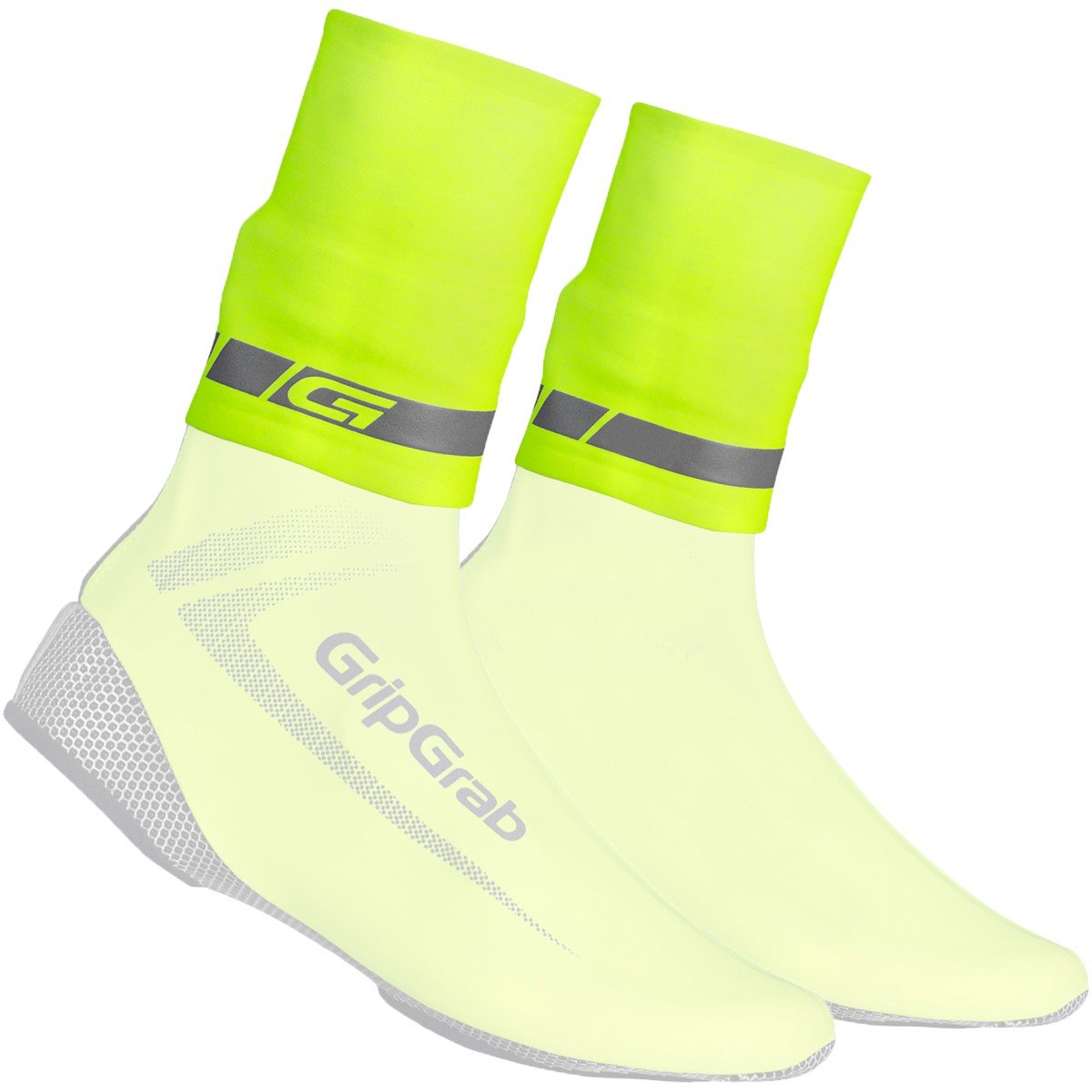 De GripGrab CyclinGaiter Hi-Vis is een innovatieve oplossing voor waterdoorlatende overschoenen. De strakke manchet zit tussen je beenwarmers en overschoenen zodat het water dat langs je kuiten loopt over de naad tussen de overschoen en beenwarmer wegstroomt in plaats van door de opening te sijpelen. Nooit meer natte voeten en schoenen. Verkrijgbaar in Hi-Vis geel met voor een betere zichtbaarheid.